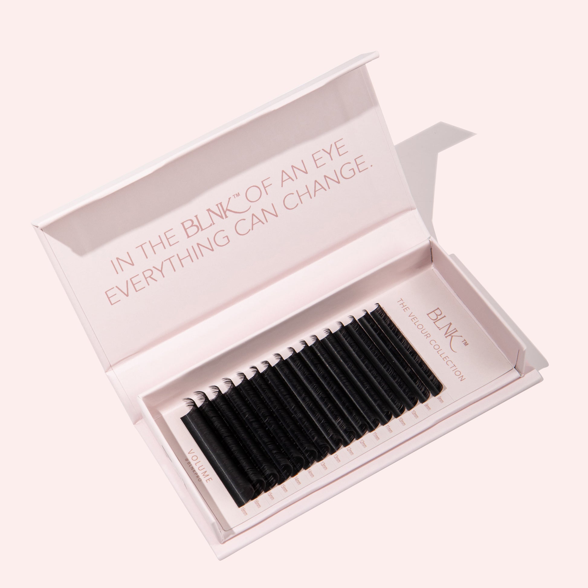 True velvet. True black. True volume. The BLNK Velour Collection was created for lash artists who refuse to compromise. Made with the finest velvet fibres, these volume lashes deliver an ultra-dark matte black finish for a flawless lash line every time.Soft to the touch and consistent from root to tip, Velour lashes fan effortlessly with speed and precision, giving you complete control in every set. They can also be used to create the trending Angel lash look effortlessly. Their superior bonding ensures exceptional retention. The finish every client expects. The tray every artist needs.